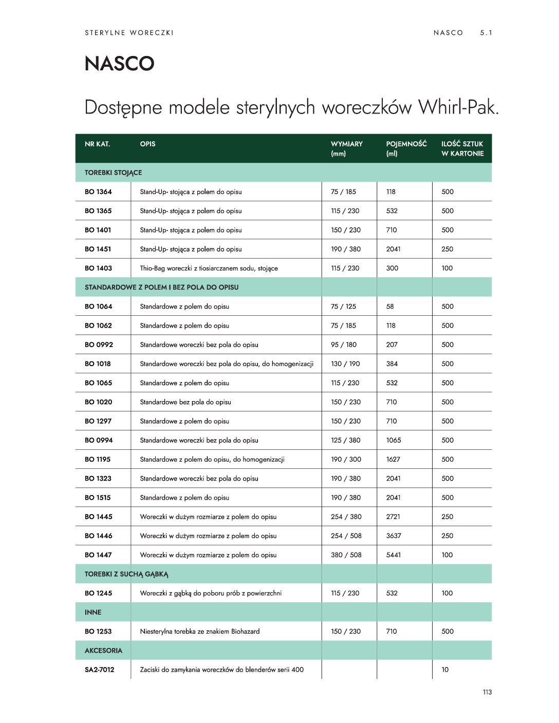 Sterylne woreczki Whirl-Pak bez pola do opisu.