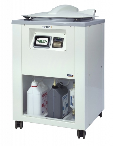 Instalacja urządzenia Serie 1 wymaga tylko podłączenia zasilania elektrycznego oraz dopływu i odpływu wody. Jako mobilne i kompaktowe urządzenie, sprawdza się w każdych warunkach, również w niewielkich pomieszczeniach. Dostęp do preparatów chemicznych oraz filtra końcowego wody jest od frontu urządzenia, co umożliwia szybką i łatwą wymianę.
