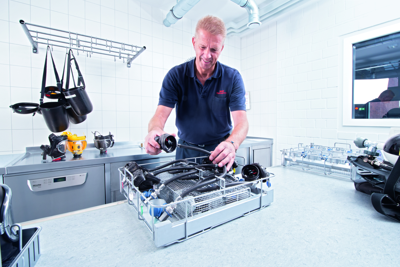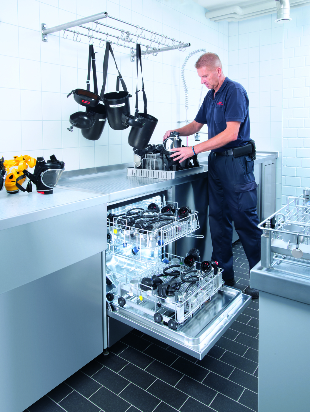 - System koszy COMPLETE: Ten zaawansowany system umożliwia umieszczenie 6 masek oddechowych oraz 6 aparatów lub 1 stelaż butli.