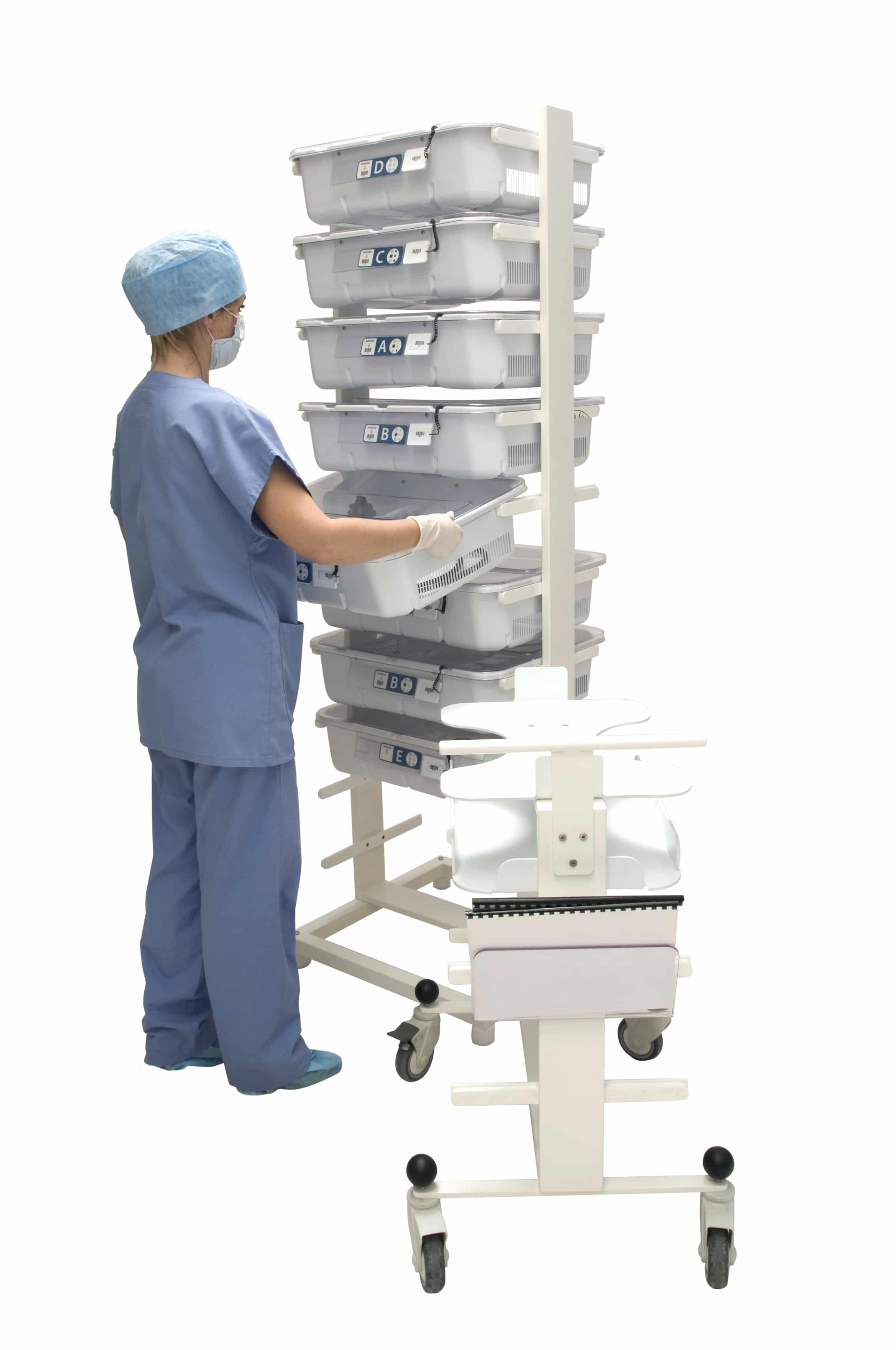 Regał Soluscope pozwala zoptymalizować transport endoskopów pomiędzy myjnią endoskopową, a sala badań. Jest kompatybilny z szafą DSC8000 przeznaczoną do przechowywania endoskopów oraz tacami do transportu endoskopów.