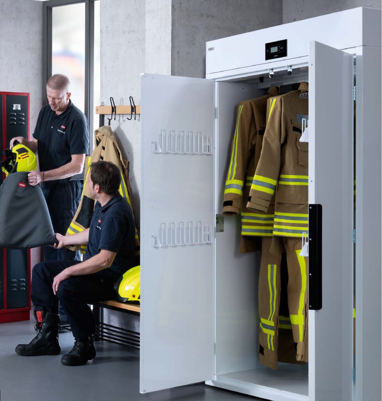 Wentylowana szafa suszarnicza została stworzona specjalnie do suszenia odzieży specjalnej, takiej jak odzież ochronna dla straży pożarnej, odzież ratownicza dla personelu pogotowia ratunkowego oraz odzież robocza do pomocy technicznej. Zapewnia ona skuteczne odwadnianie i suszenie różnych elementów wyposażenia. Idealna dla wszystkich jednostek PSP i OSP.
